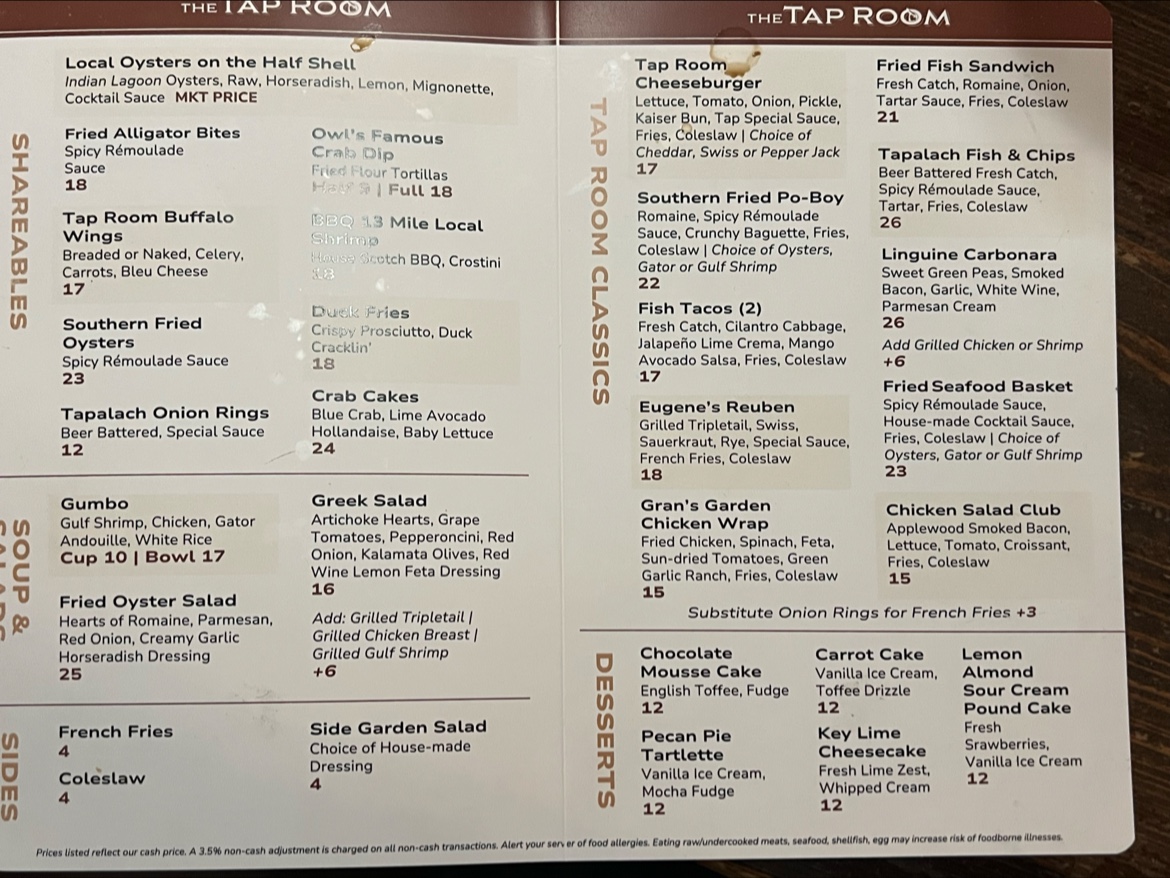 Welcome to The Owl Tap Room, a culinary gem nestled in the heart of Apalachicola, FL. This inviting eatery offers a menu rich in flavor and creativity, striking a perfect balance between casual dining and gourmet flair.